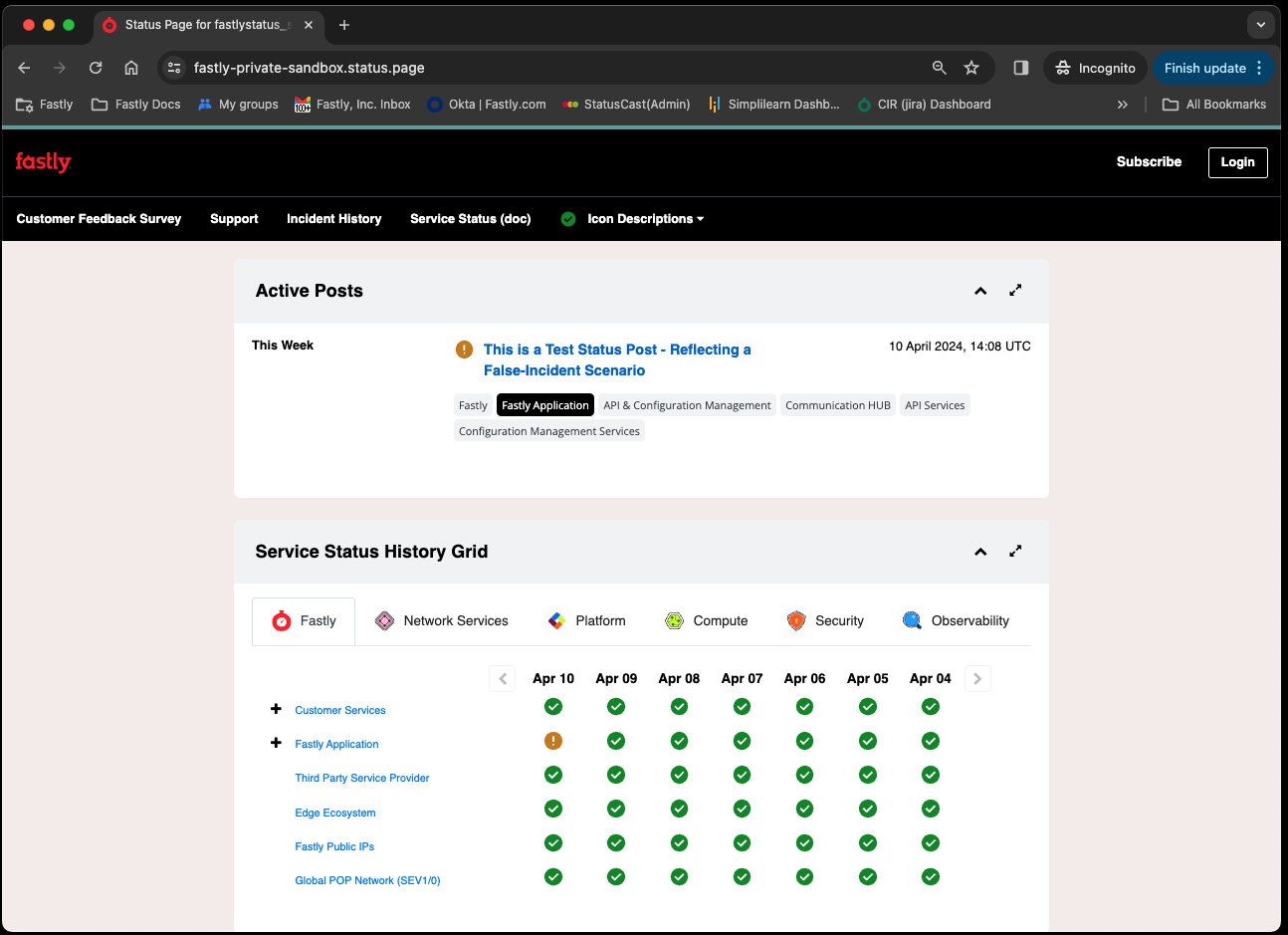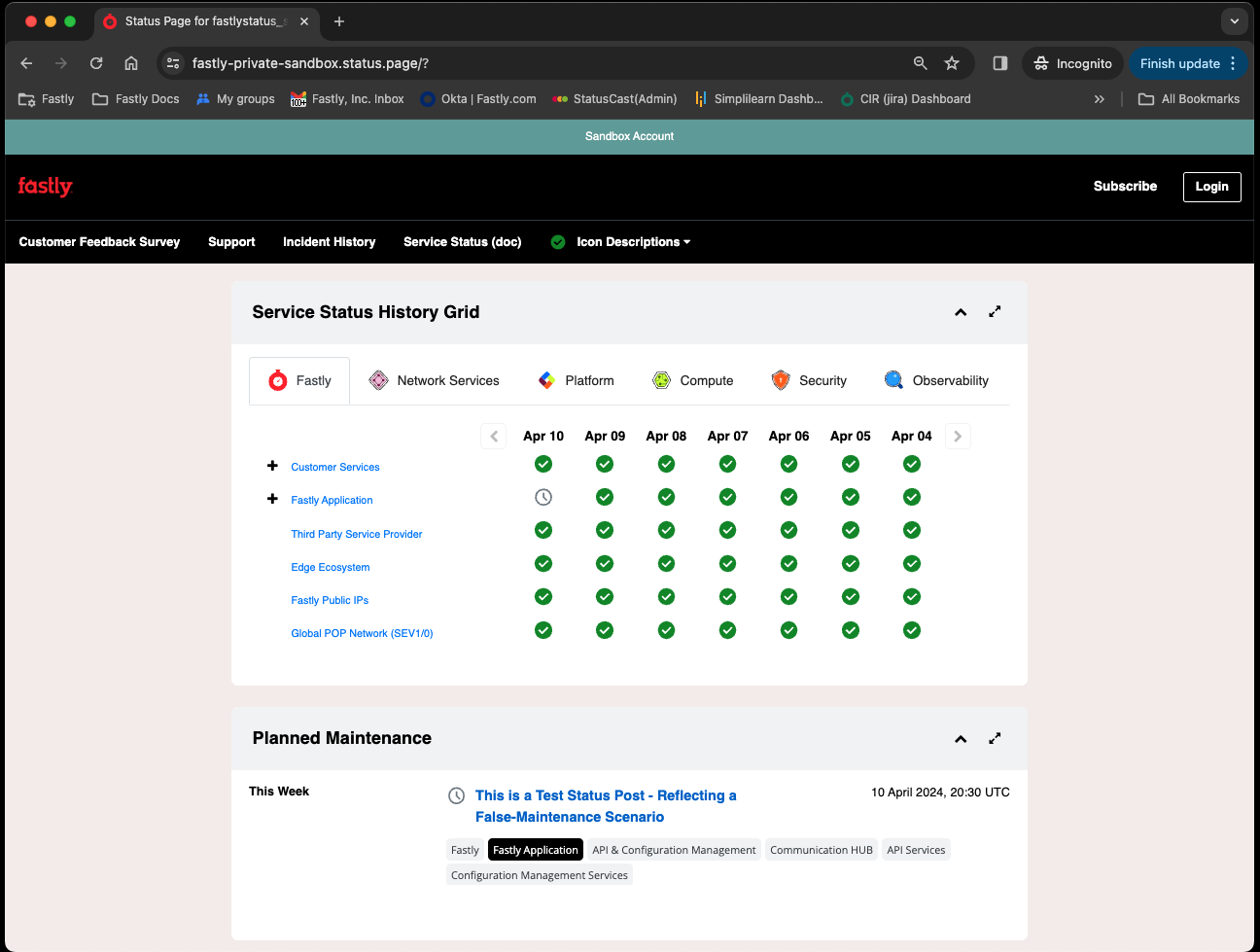 New Release: Status Page (www.fastlystatus.com) updates - no actions required